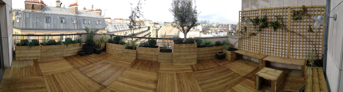 - Terrasses surélevées avec garde-corps intégrés