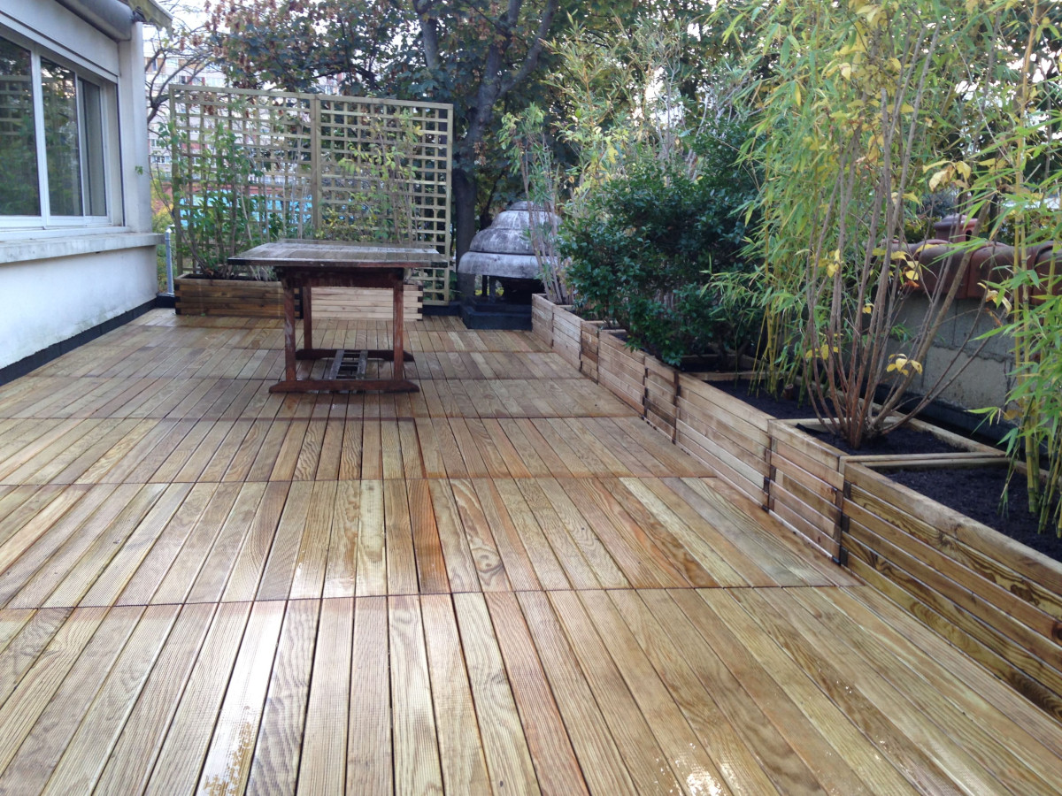 Une terrasse bien posée avec des bois de qualité peut durer entre 15 et 30 ans, selon l’entretien et l’essence utilisée.